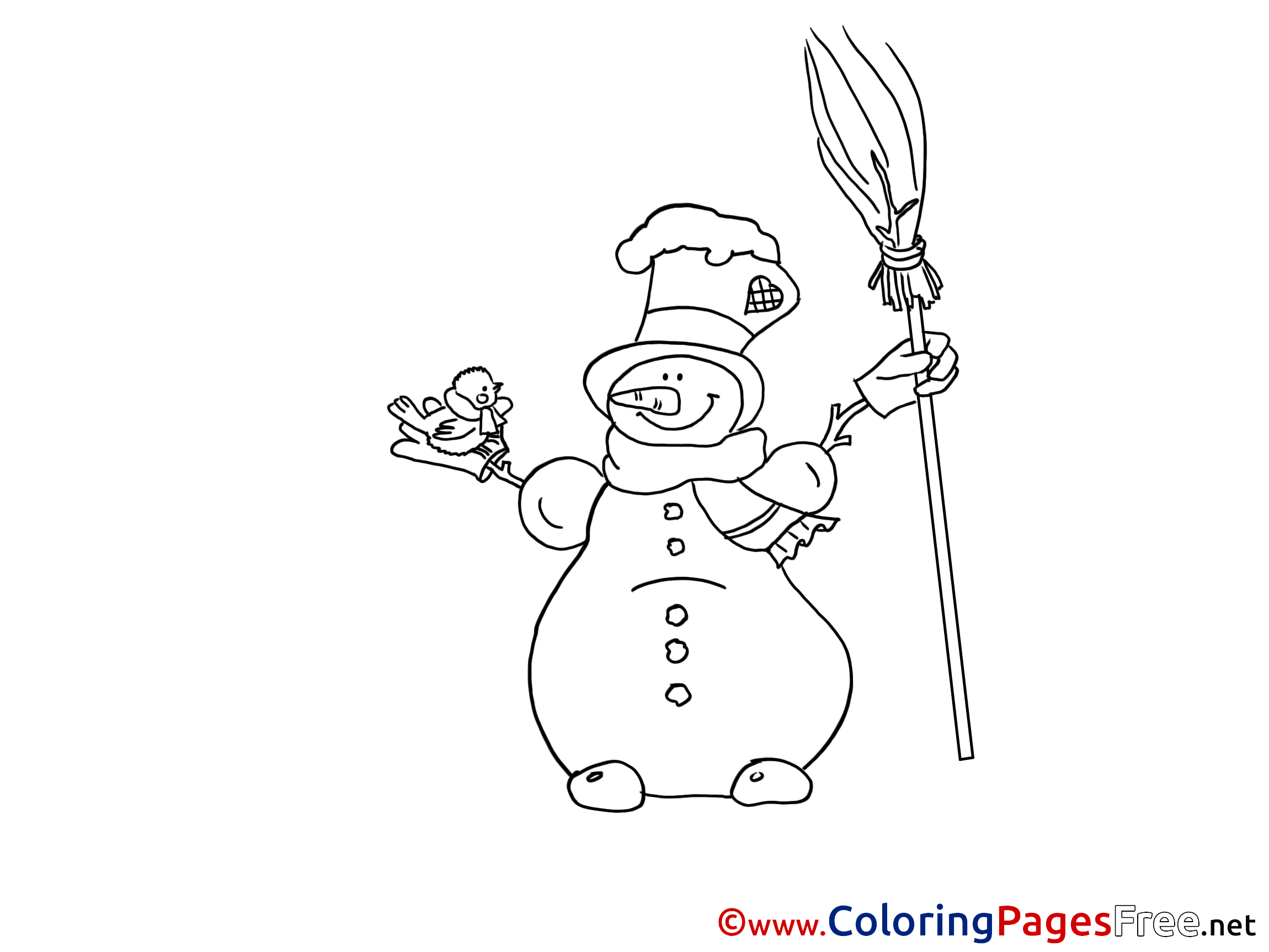 Broom Winter Snowman Coloring Page for Kids