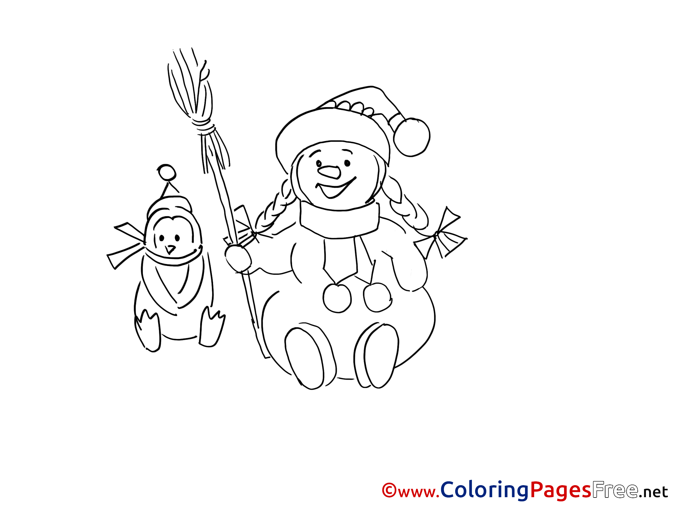 Title of Coloring Sheet: Broom Winter Snowman Colouring Page for Children