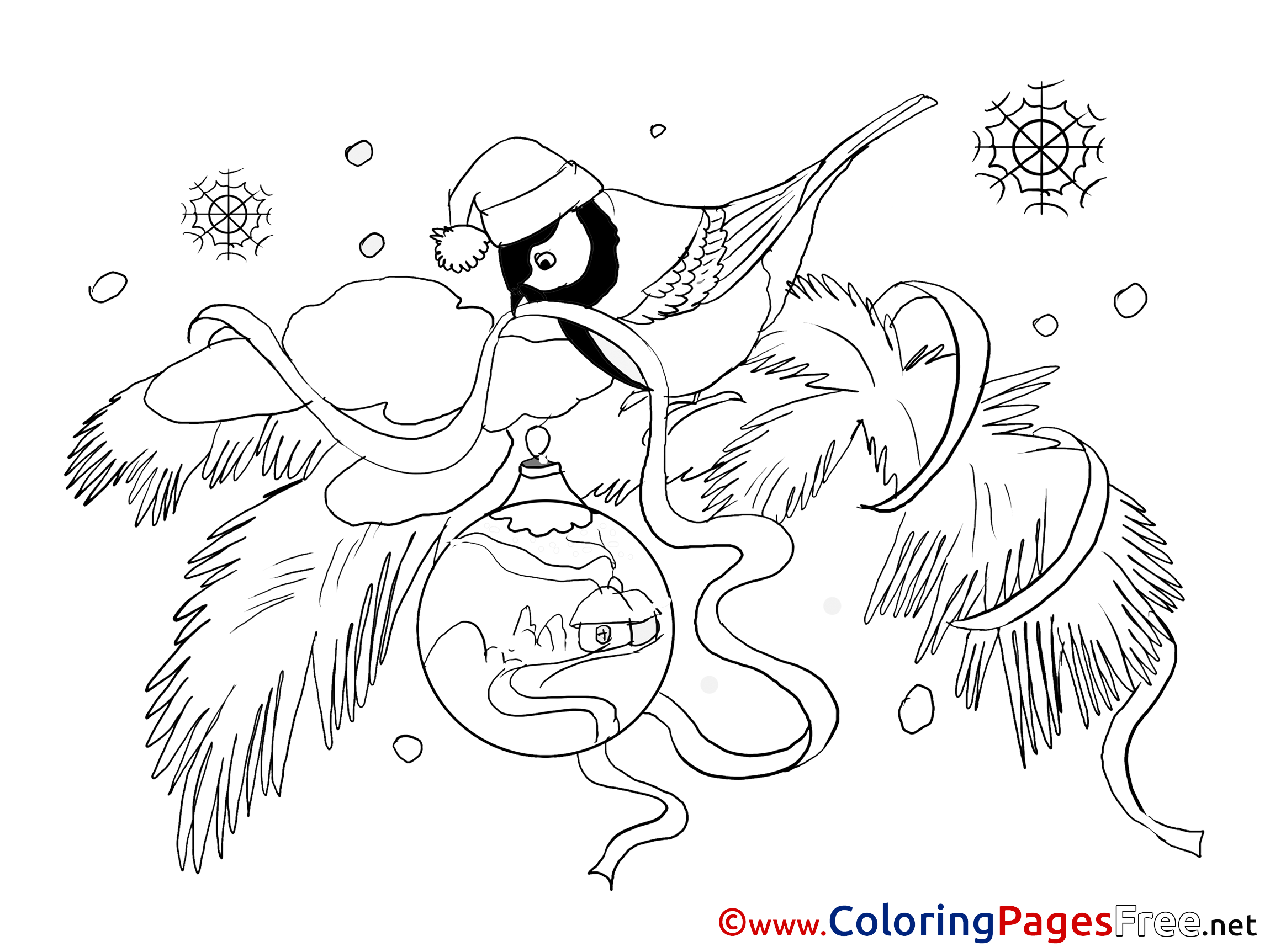 Title of Coloring Sheet: Bullfinch Winter Colouring Page for Kids