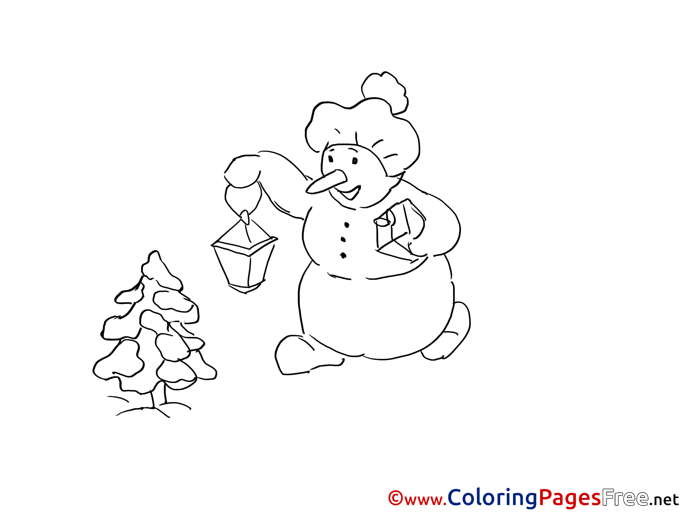Lantern Snowman Winter Coloring Pages