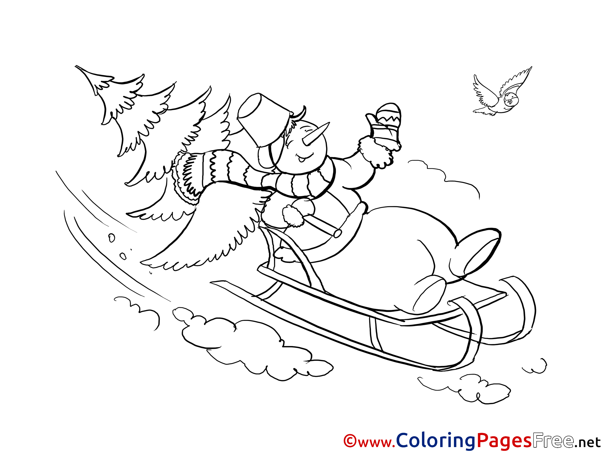 Title of Coloring Sheet: Sleigh Winter Snowman download Coloring Pages