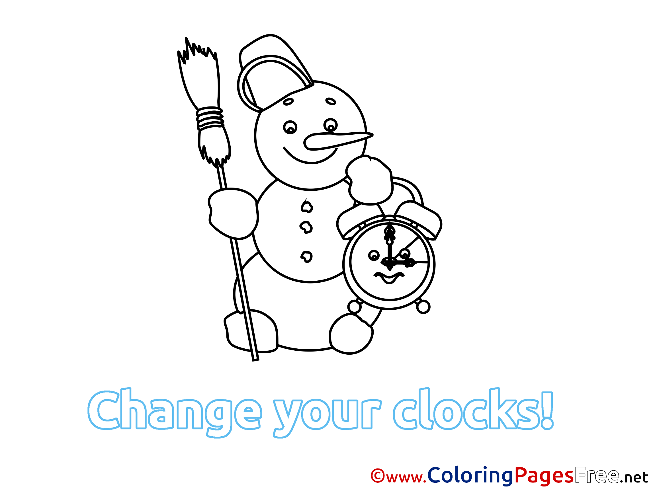 Snowman Winter Clock free Colouring Page