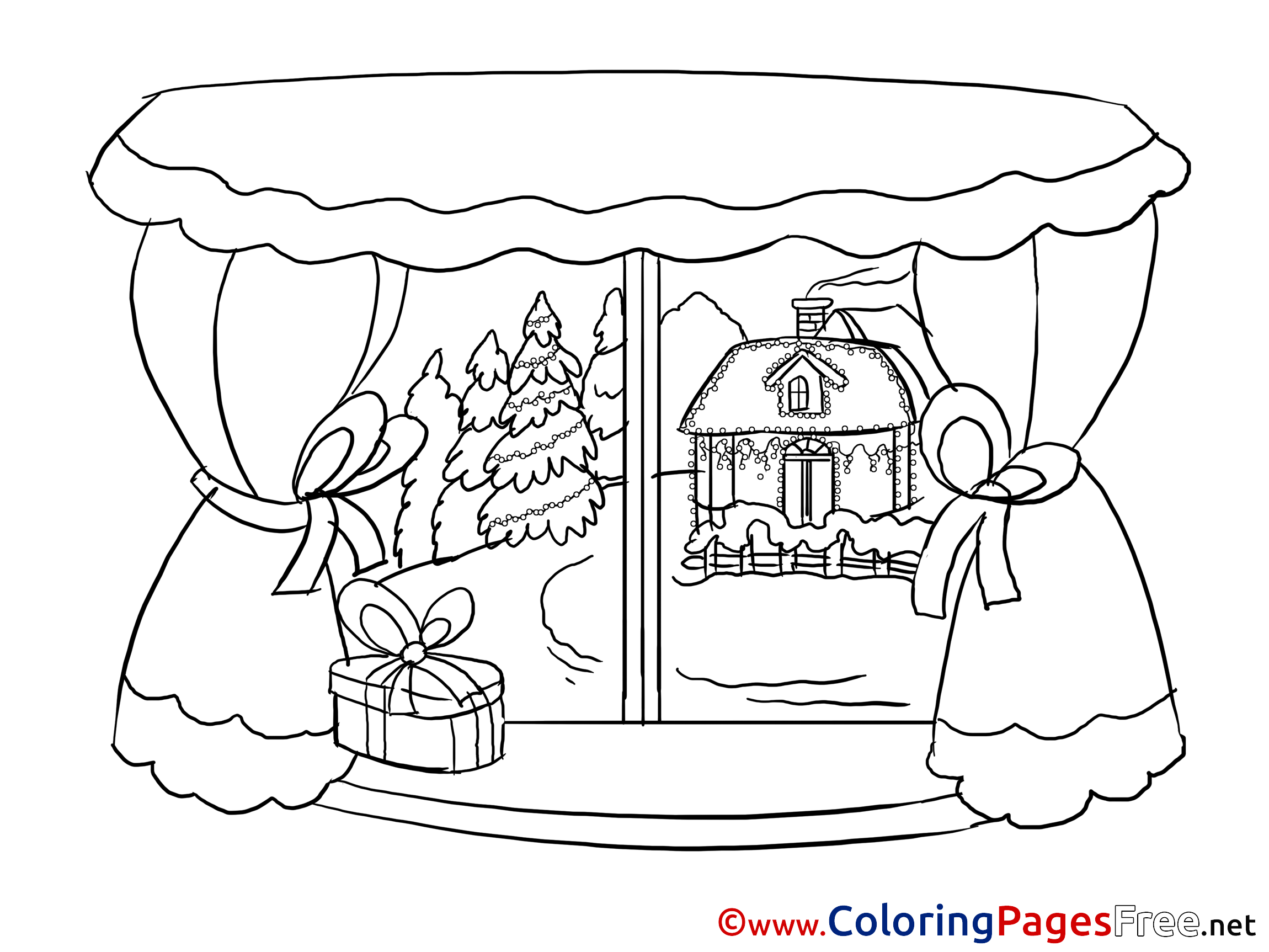 Title of Coloring Sheet: Window Winter printable Coloring Pages