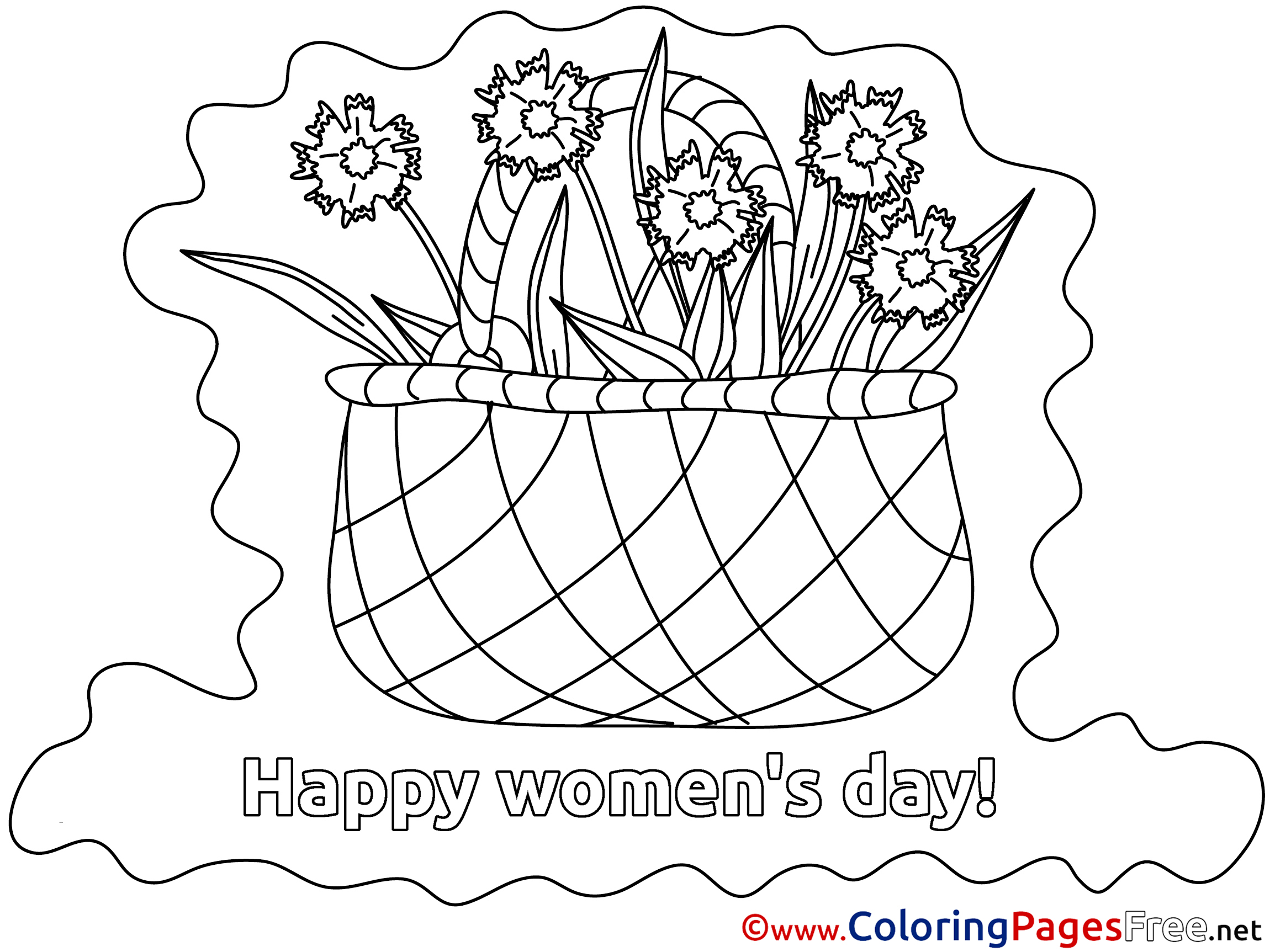 Title of Coloring Sheet: Basket Flowers Women's Day free Coloring Pages