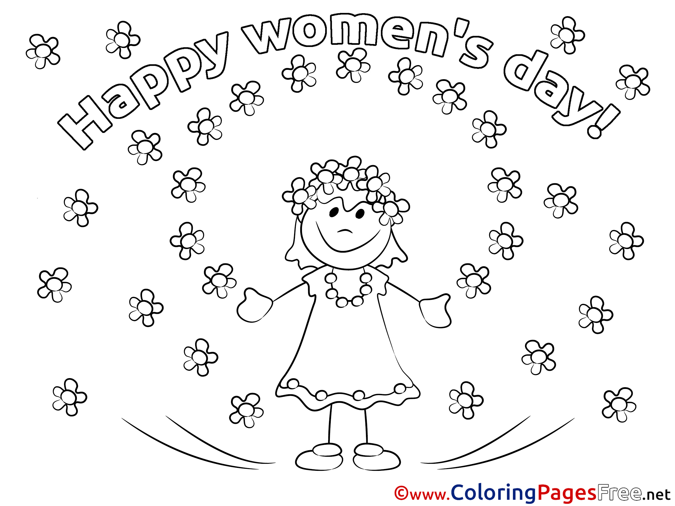 Vorschau-Bild: Girl Flowers Coloring Pages Women's Day for free
