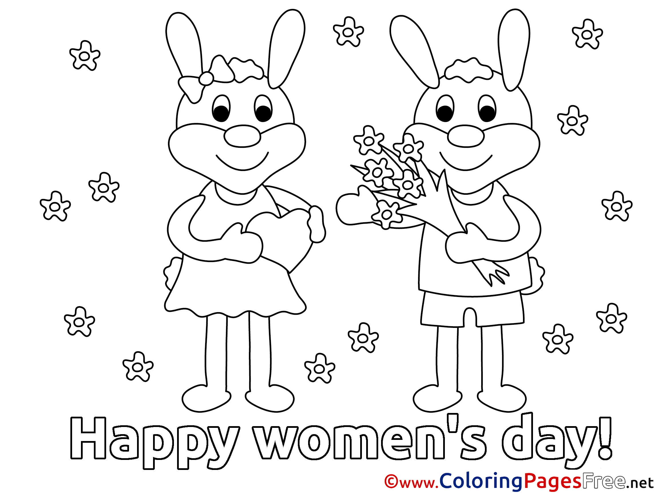 Hares Women's Day Bouquet Colouring Sheet free