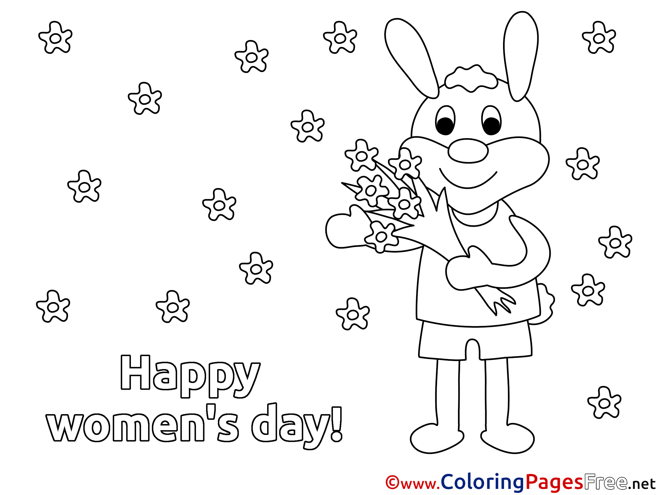 Title of Coloring Sheet: Rabbit Bouquet free Colouring Page Women's Day