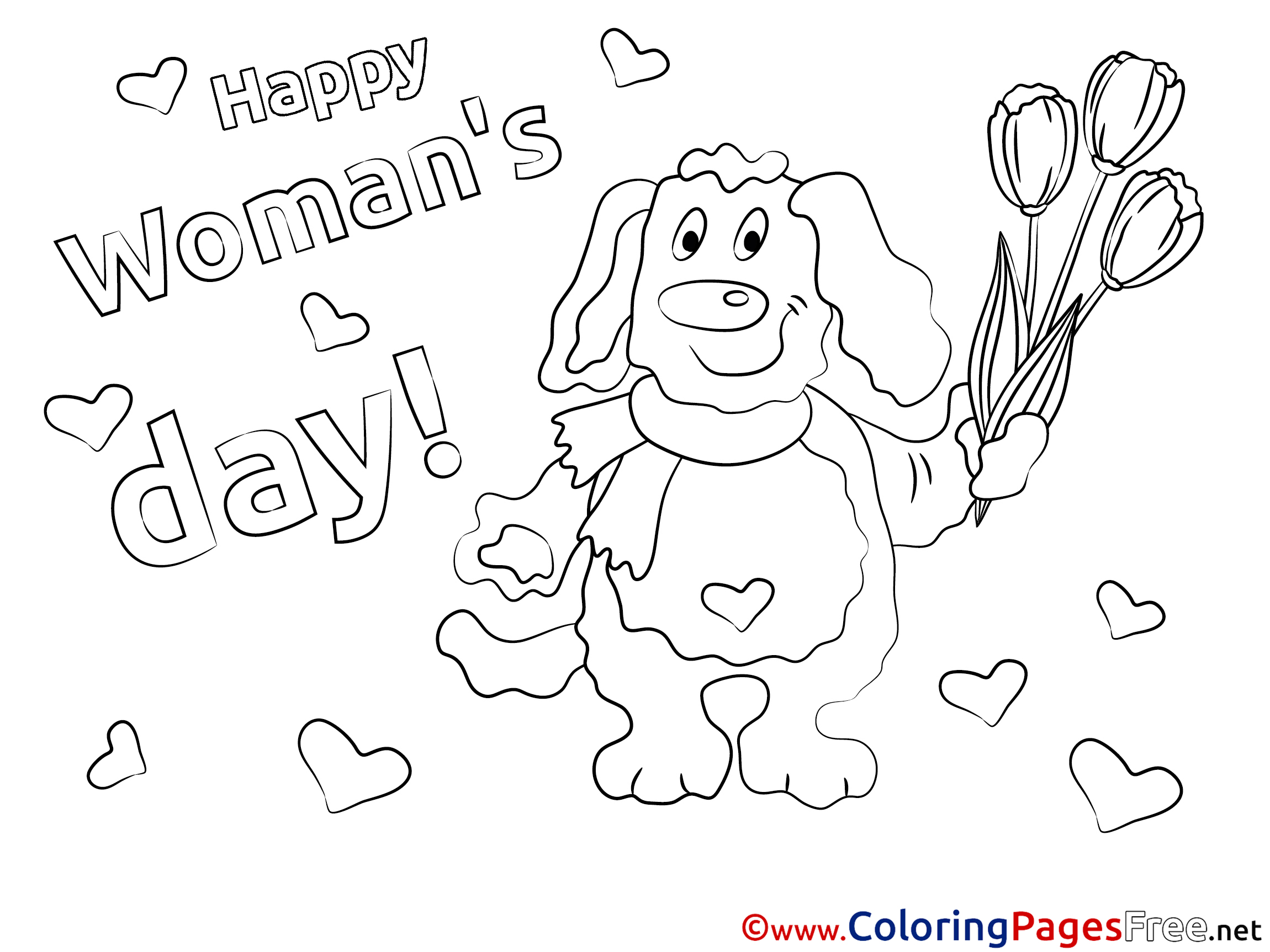 Title of Coloring Sheet: Tulips Dog for Kids Women's Day Colouring Page