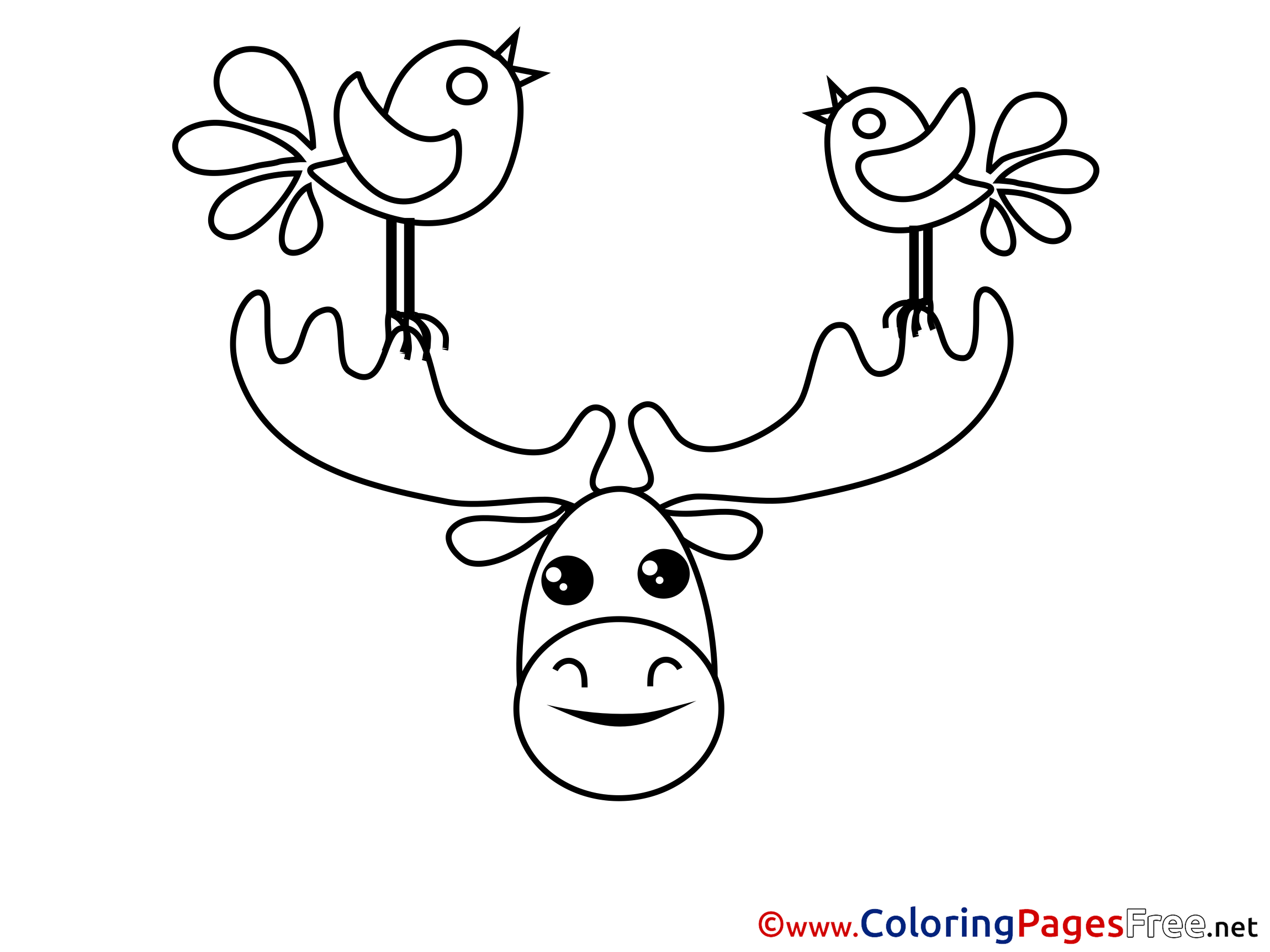 Deer Birds free printable Coloring Sheets