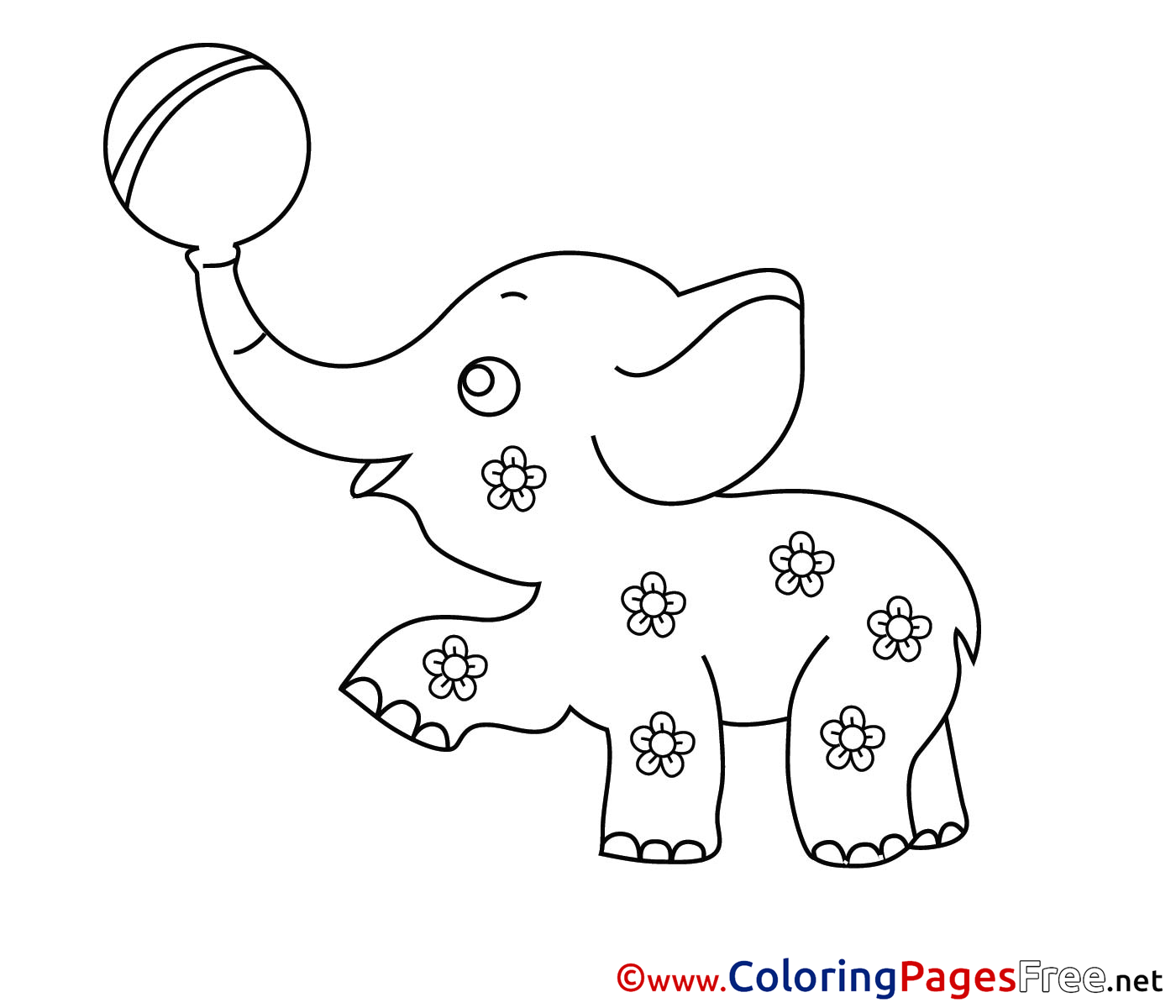 Title of Coloring Sheet: Elephant with Ball free Coloring Pages for Children