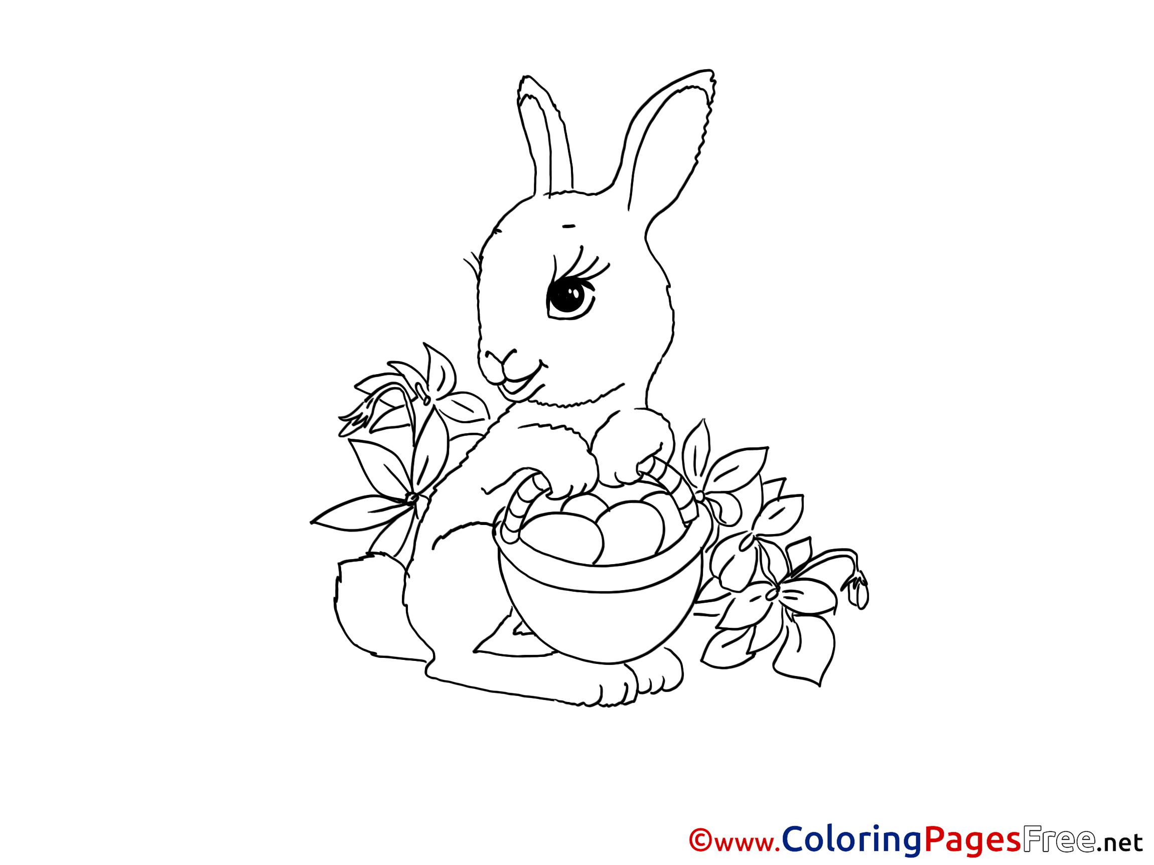 Rabbit Flowers printable Colouring Page for Kids
