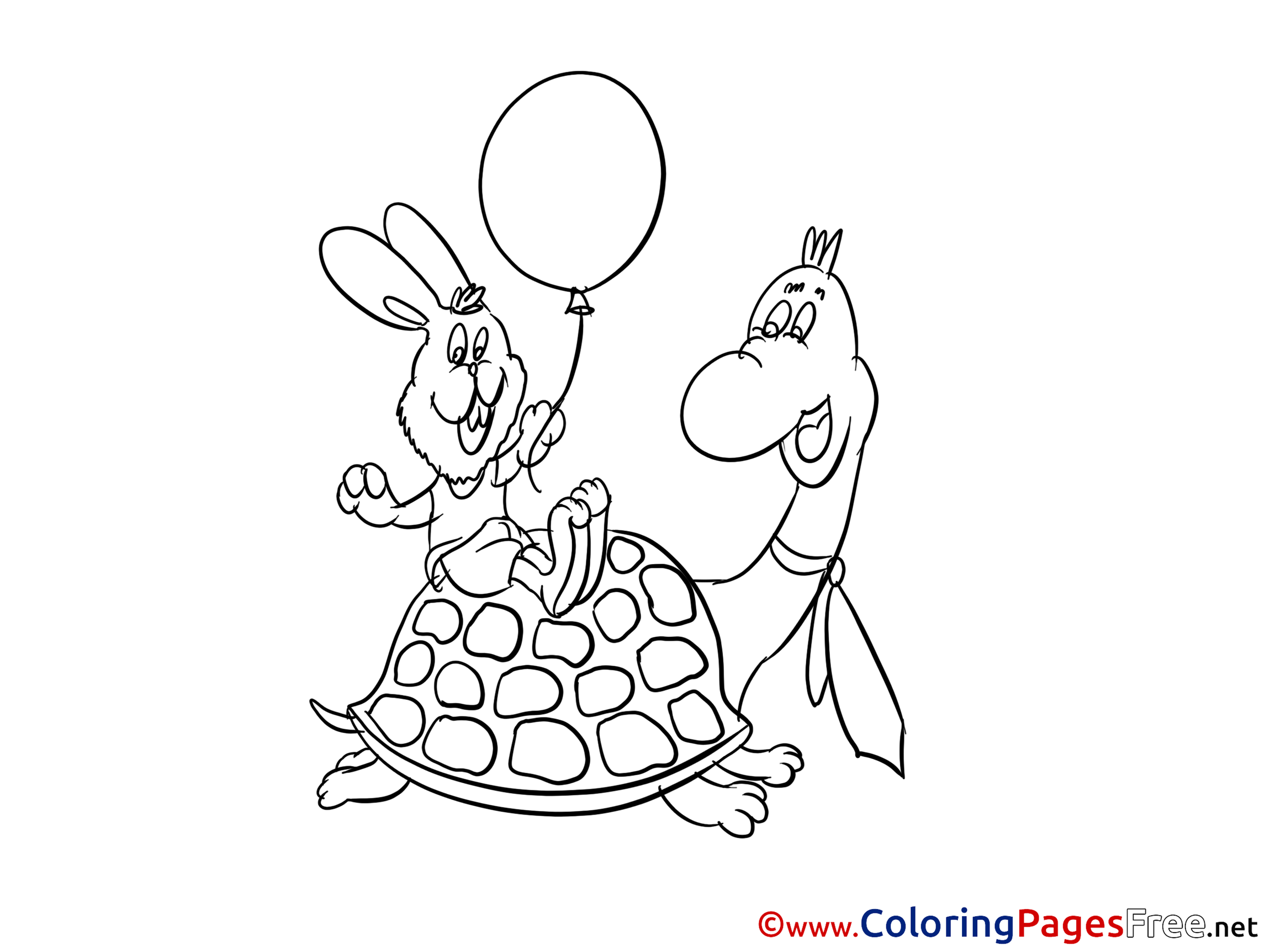 Title of Coloring Sheet: Turtle Hare printable Colouring Page for Kids